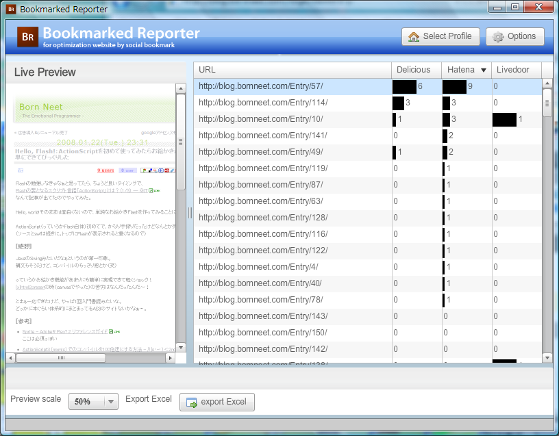 Bookmarked Reporterでソーシャルブクマられ具合を調べてみた