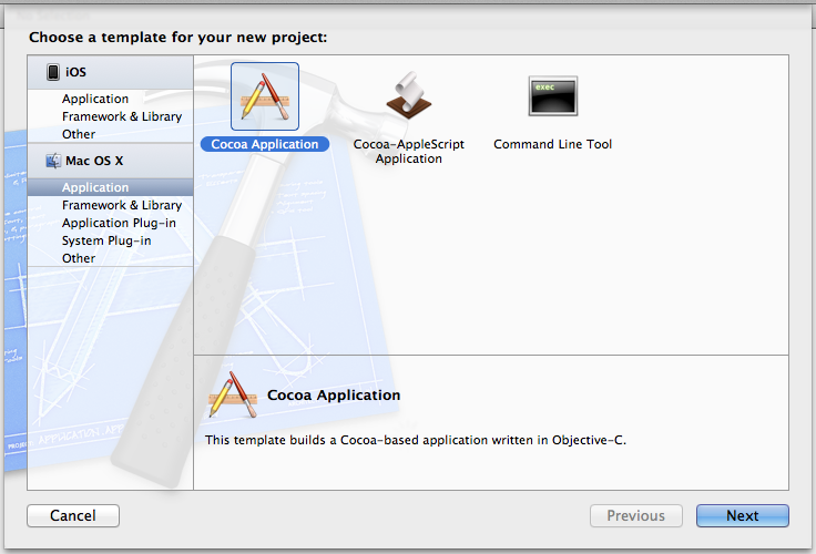 Cocoa Applicationを選択して