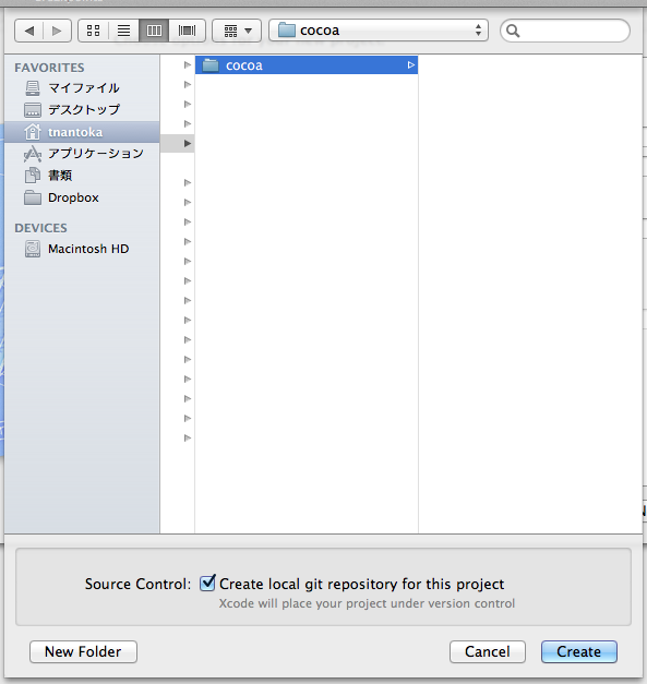 Create local git repository for this projectをチェックして、