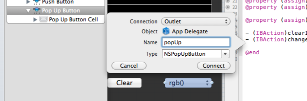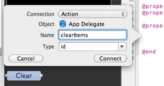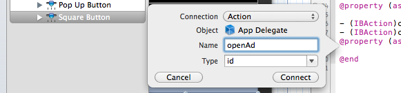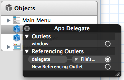 IBのObjectsで、controlキーを押しながらApp Delegateをクリックします。