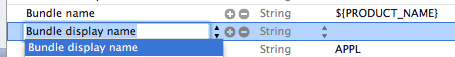 ColorClick-Info.plistでBundle nameを選択すると横に表示される+をクリックして、Bundle display nameを追加します。ValueはBundle nameのものをコピーして${PRODUCT_NAME}としておきます。