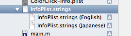 この作業の後、Project navigatorで▶InfoPlist.stringsを開くと、