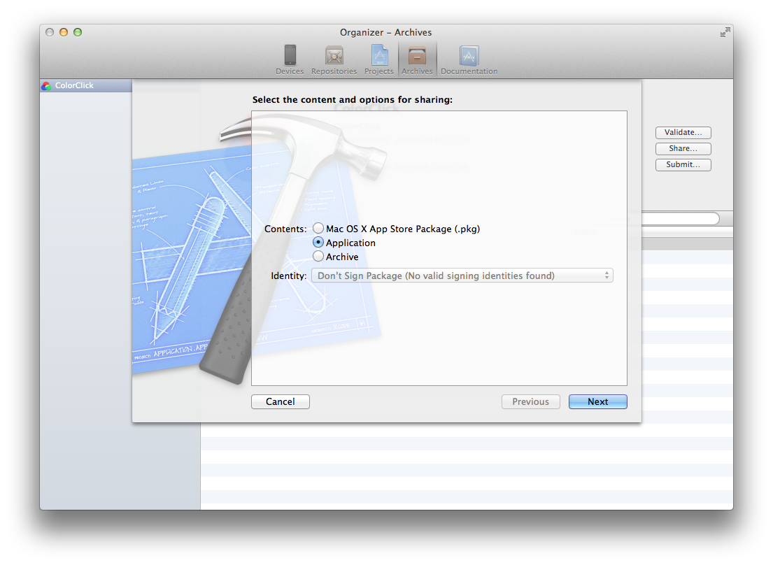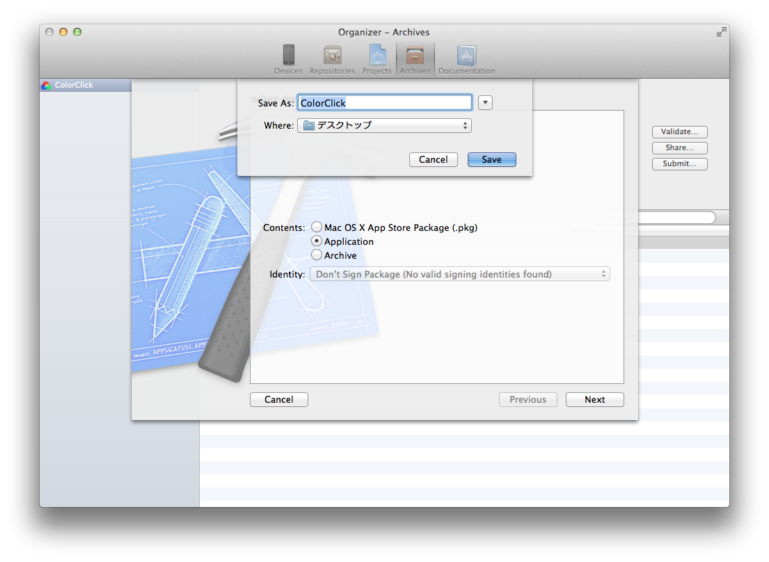 まさかユーザにXcodeでBuild & Runしてくれとお願いするわけにはいきませんから、.appファイルにパッケージングします。